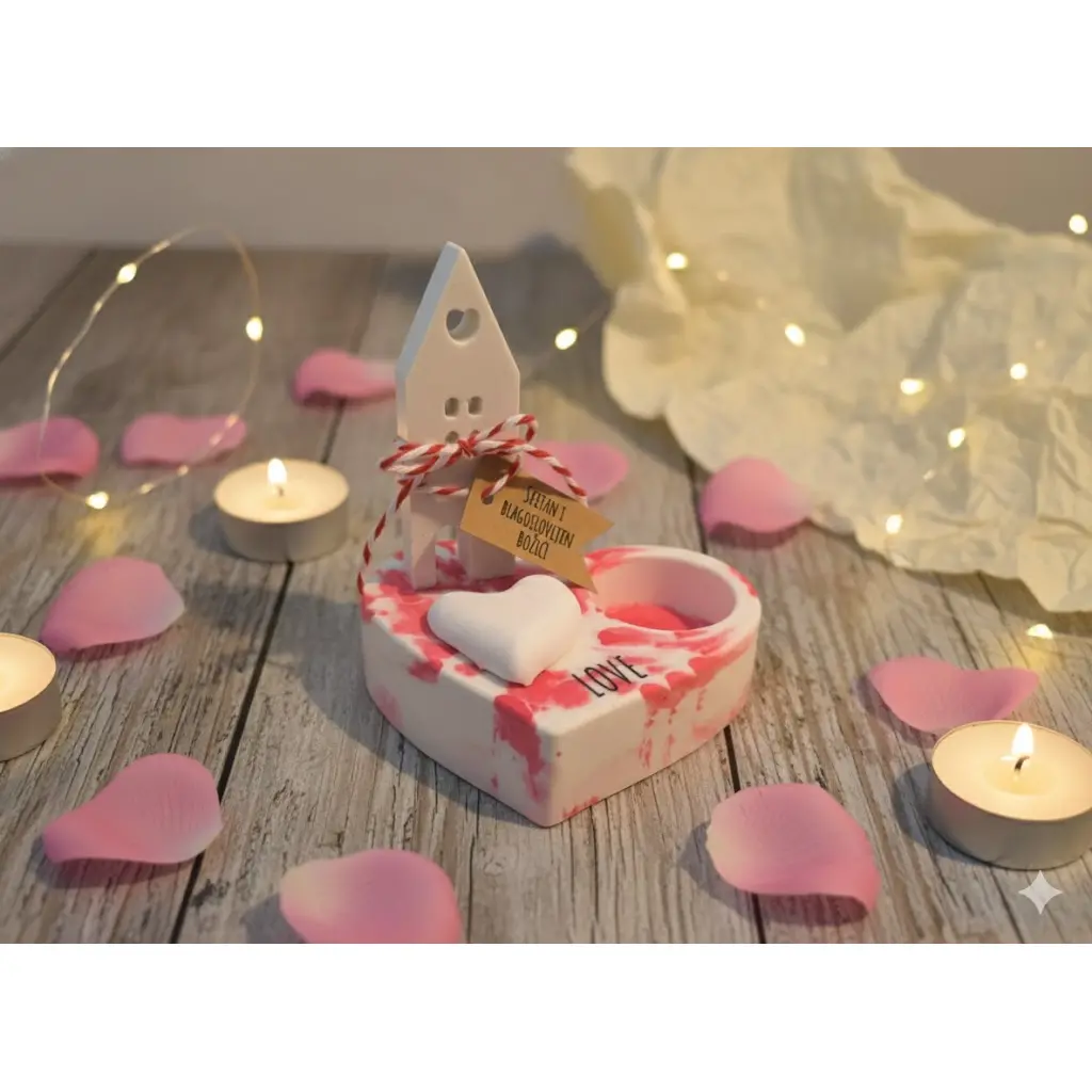 Dekoracije od gipsa, birajte setove, u napomeni možete napisati ako želite drugačiju kombinaciju. Nisu ljepljeni pa možete sami aranžirati setove. Mogućnost personaliziranog natpisa na sami gips i na kartonske kartice. Također možete birati boju seta.