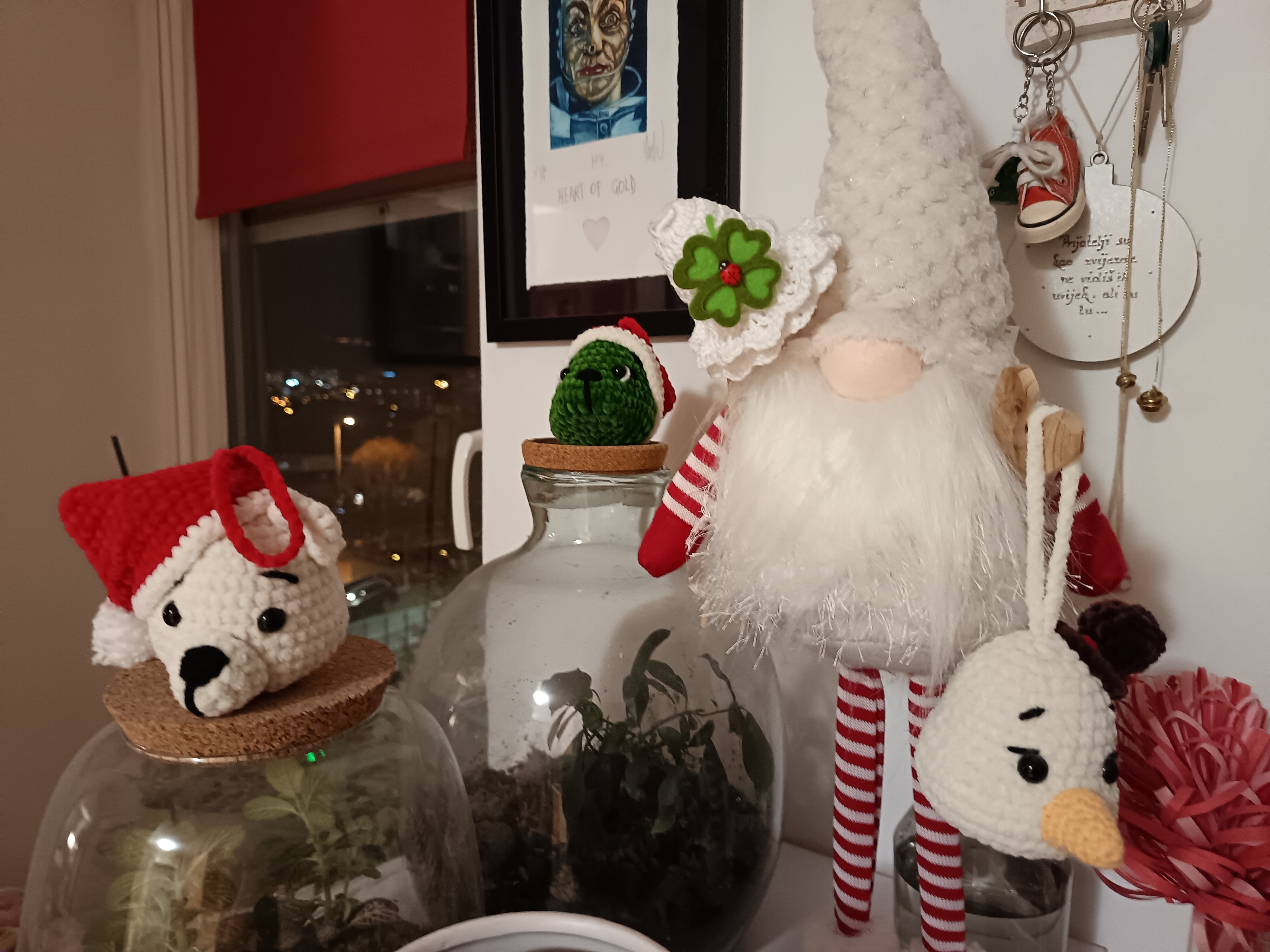 Kuglice za bor ručno rađene. Heklane sa plišanom vunom.