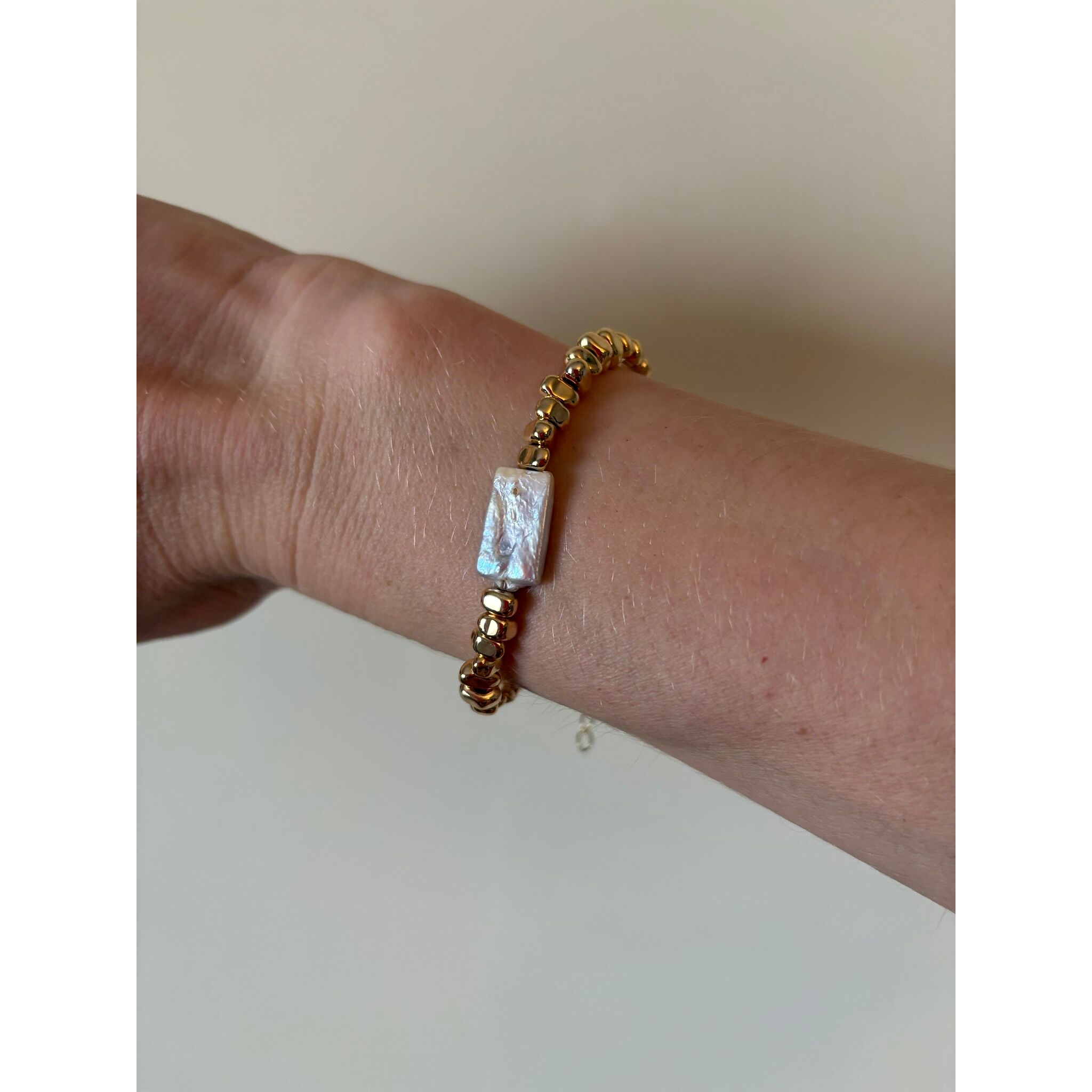 Narukvica od pozlaćenog poludragog kamena hematita i riječnog bisera.