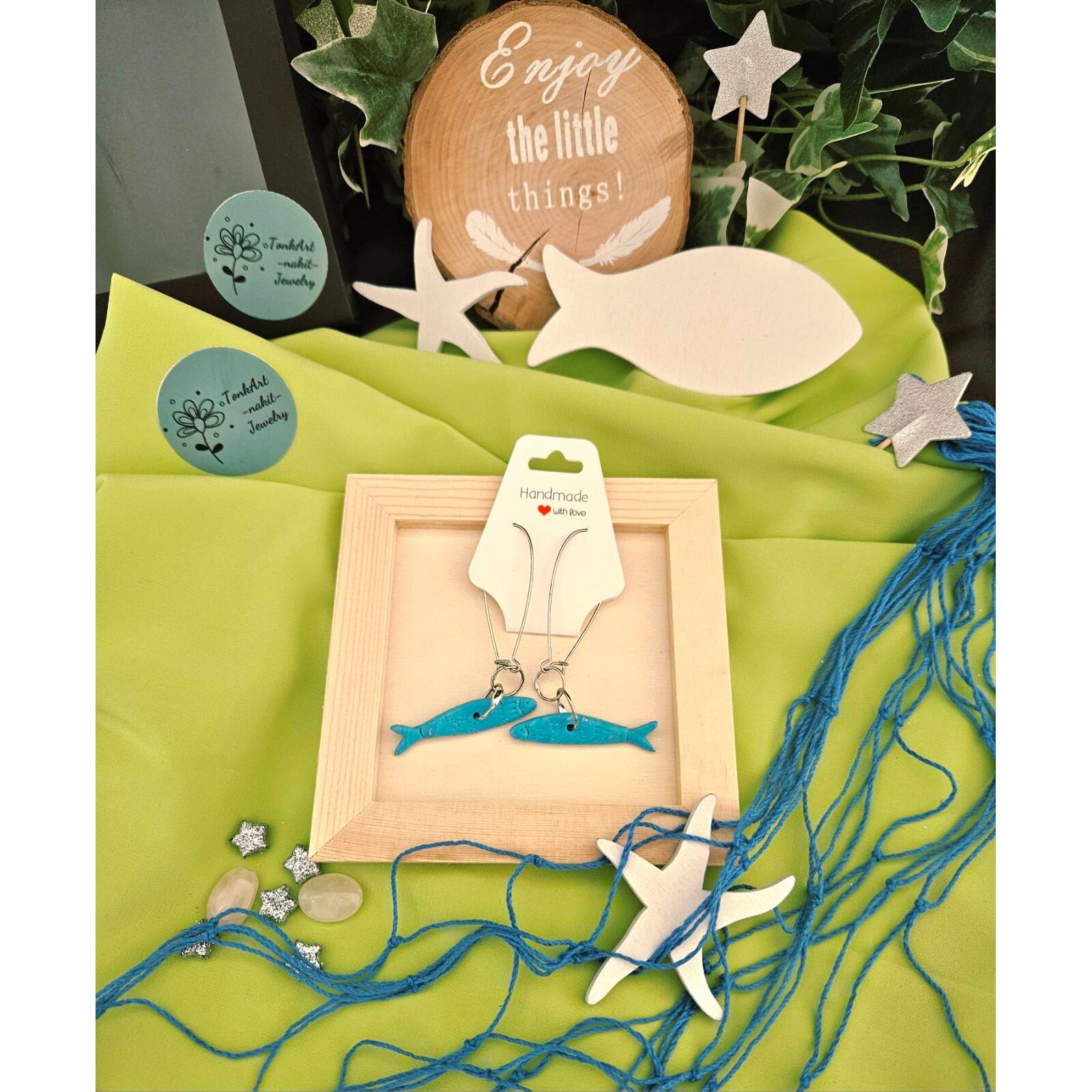 Zaronite u svijet mora i boja s ovim naušnicama u obliku ribica, koje kao da se isplivale iz morskog sna. Svaka ribica pažljivo je modelirana od kvalitetne polimerne gline, u bojama jadranske plave i nježno naglašenim sitnim detaljima koji podsjećaju na ljuske i pokret vode. Njihova tekstura i oblik prizivaju osjećaj slobode, igre i ljetne morske svježine - kao da ste upravo zakoračili u priču o sirenama i zaboravljenim zaljevima. Naušnice su lagane, udobne za nošenje, a zahvaljujući hipoalergenskim kukicama, prikladne su za najosjetljivije uši.