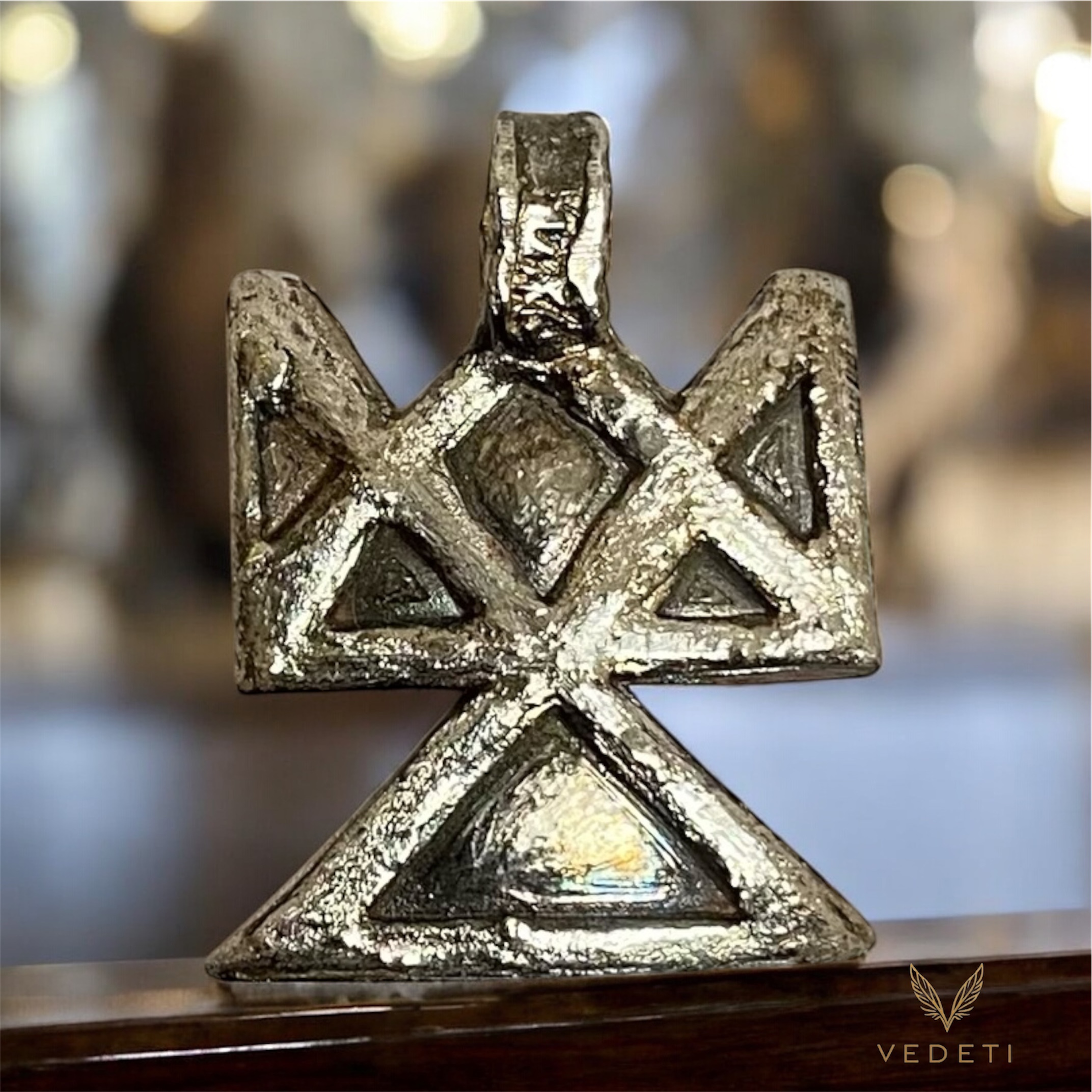 Srebrni privjesak, simbol boga Triglava, rucno izraden tehnikom Silver Art Clay 999. Uz privjesak, kupac dobiva poruku o znacenju i energiji koji privjesak nosi.