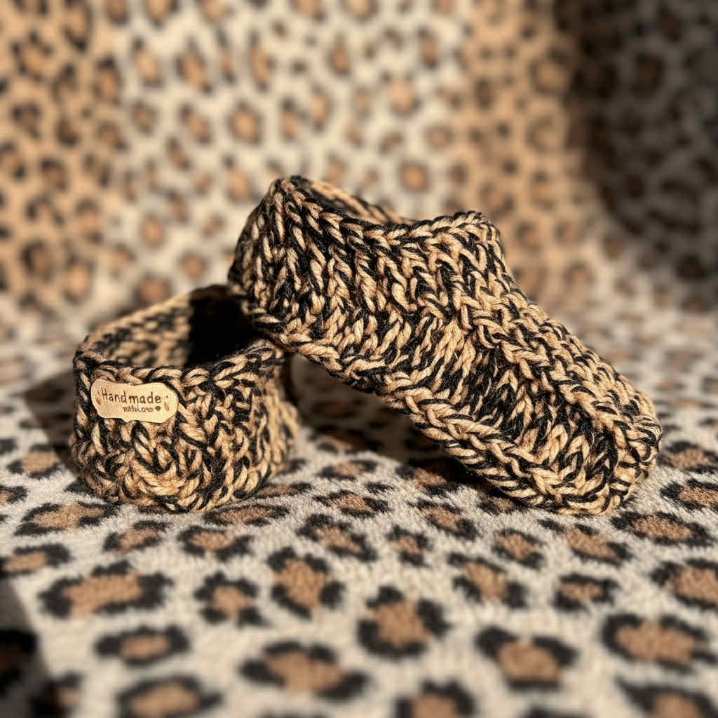 Ove ručno rađene pletene papice u leopard bojama spoj su udobnosti i karaktera. Mekane, tople i ugodne na stopalima, ali s dozom odvažnosti – jer leopard nikad nije samo uzorak, nego stav.