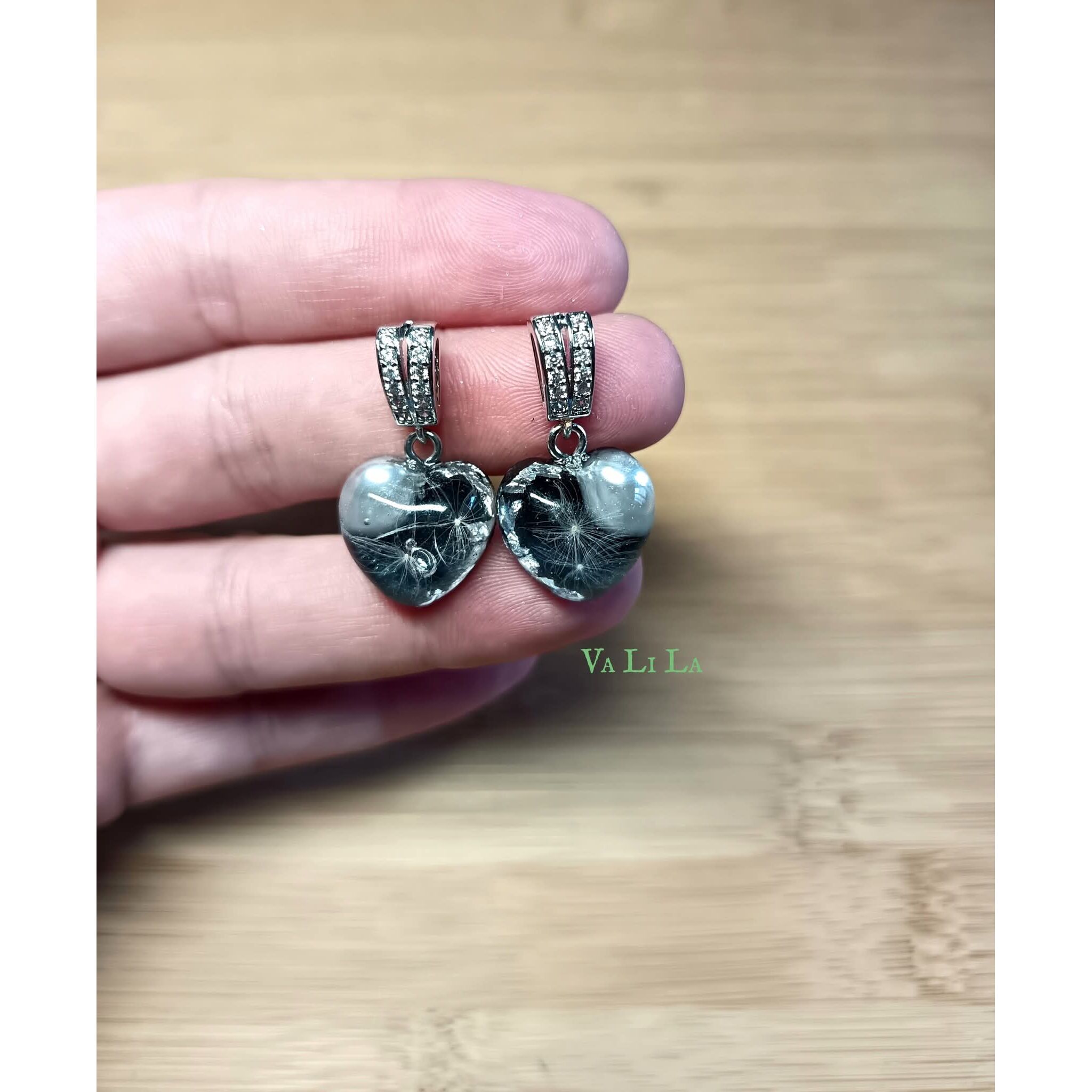 Cvjetne naušnice sa bijelim biserom (nije pravi), padobrancima maslačka i srebrnim listićima u epoxydnoj smoli.